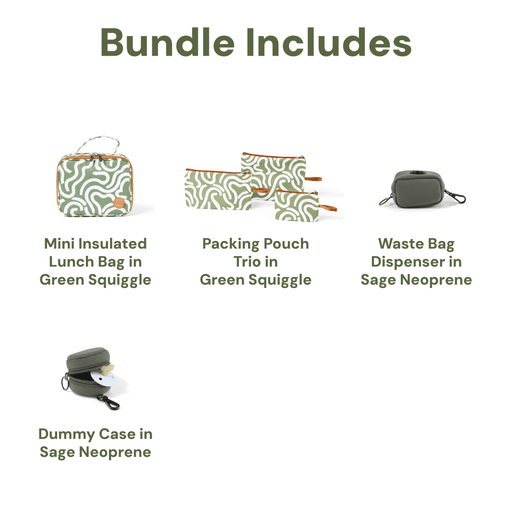 Nappy Bag Organisation Kit – Green Squiggle & Sage Neoprene