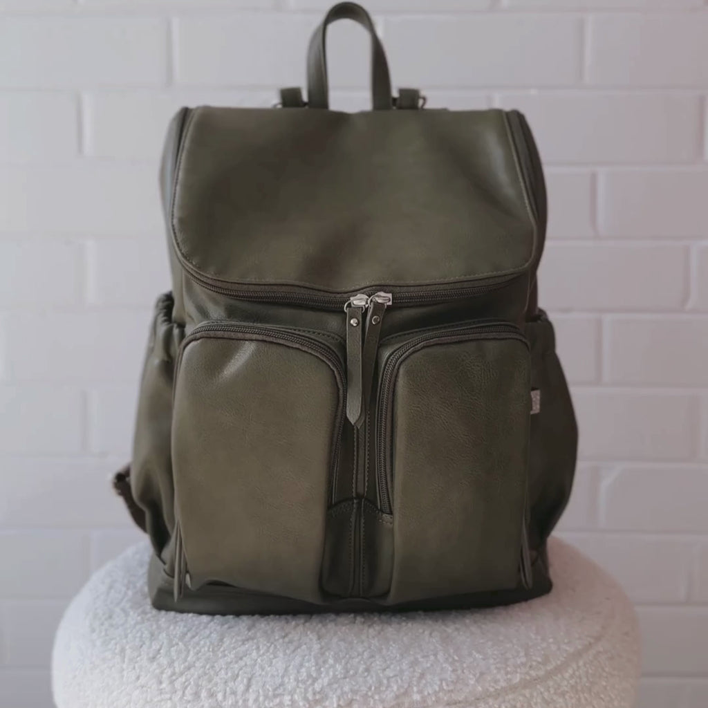 Signature Nappy Backpack - Olive Vegan Leather