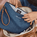 Materials: Bio denim with tan vegan leather trim, brass hardware